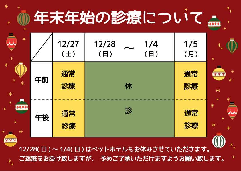 本田獣医師の直近の月曜出勤日は12月8日,15日です